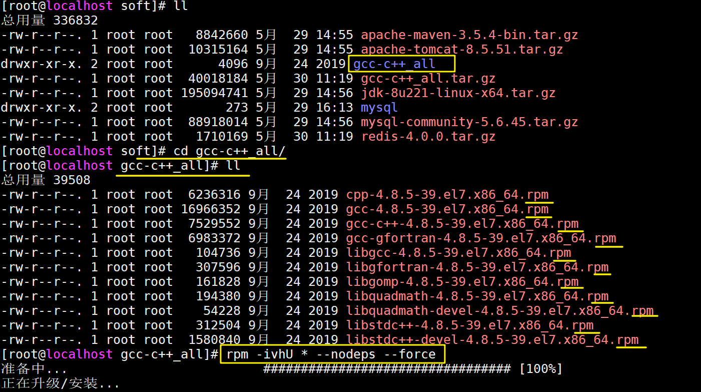 [root@localhost soft]# tar -xvf gcc-c++_all.tar.gz
