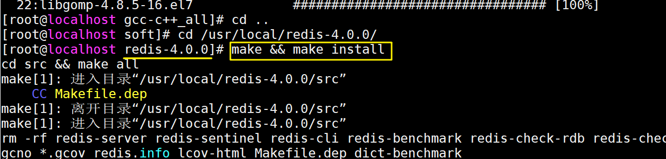 4.有了编译器,来到解压后的redis目录使用gcc编译器安装