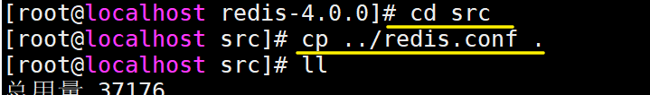 5.来到redis的src目录,赋值src上一层目录的redis.conf文件复制到当前src目录。