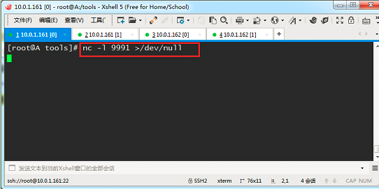 步骤2,下面B机器连接A机器的9990端口,把接收的数据输出到空设备上