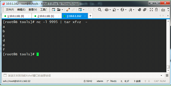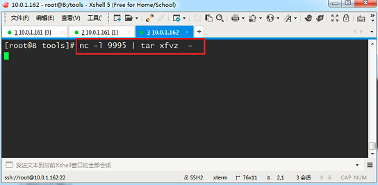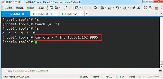 管道前面表示把当前目录的所有文件打包为 - ,然后使用nc发送给B机器