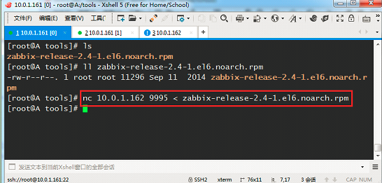 nc 10.0.1.162 9995 < zabbix-release-2.4-1.el6.noarch.rpm