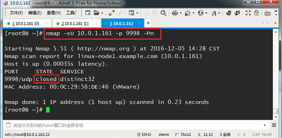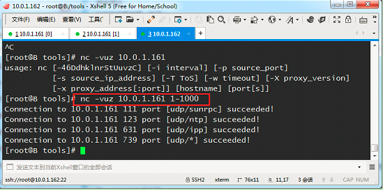 由于udp的端口无法在客户端使用telnet去测试,我们可以使用nc命令去扫描(前面提到nc还可以用来扫描端口)