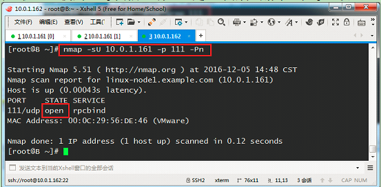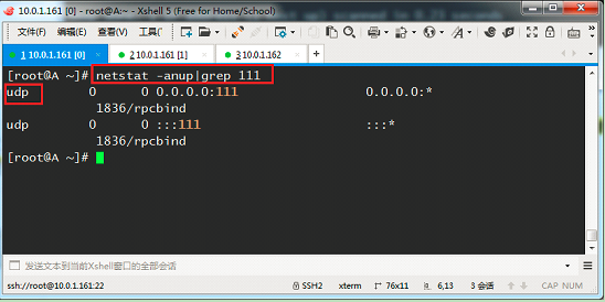 下面,A机器上rpcbind服务,监听在udp的111端口