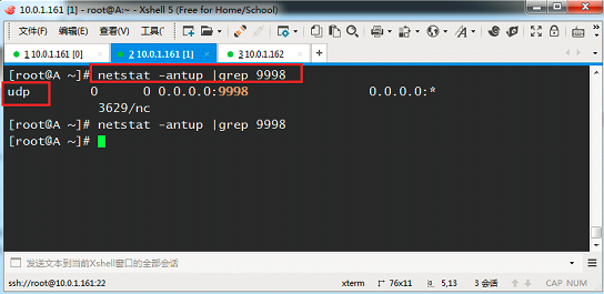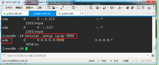 复制当前窗口输入 netstat -antup |grep 9998 可以看到是启动了udp的监听