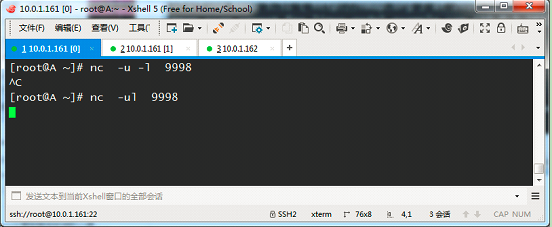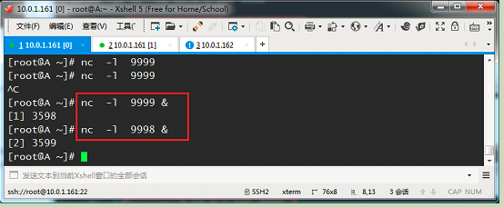 在A机器上监听2个端口,一个9999,一个9998,使用&符号丢入后台
