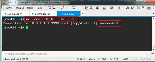 在B机器上telnet A机器此端口,如下显示表示B机器可以访问A机器此端口