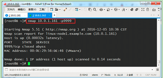 在B机器上使用nmap扫描此端口,是正常的检测到处于open状态