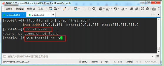如果提示如下-bash: nc: command not found 表示没安装nc的包