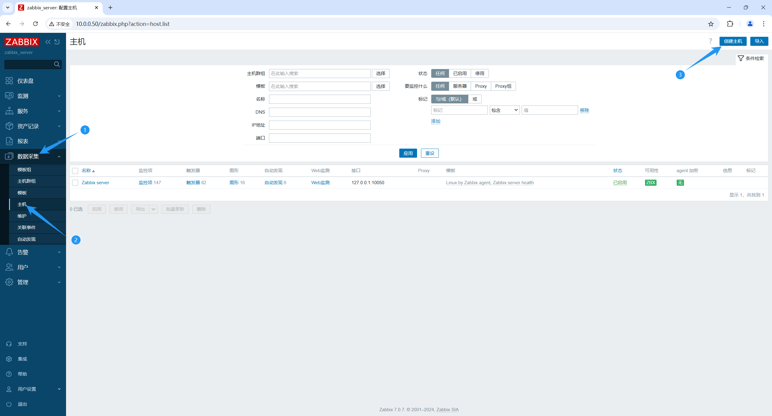 | 10.0.0.50 | zabbix-01 | 2c4G |