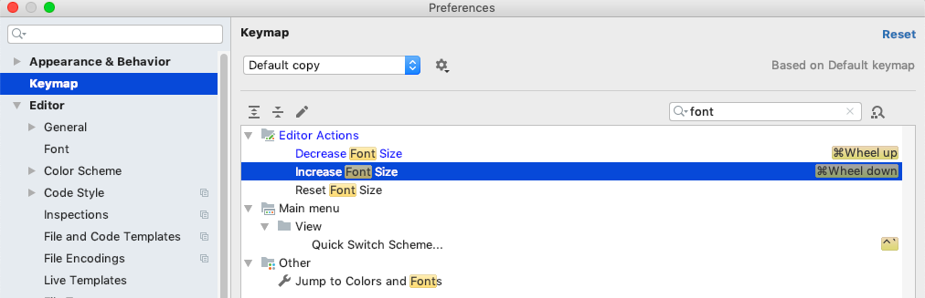 我是选择的设置鼠标的,是第二个,command+扭上划字体方法。