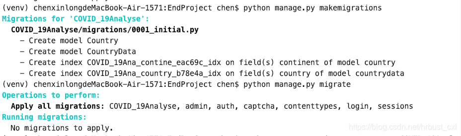 你之前已经在其他平台(如Linux命令行)运行过这些代码,创建了这些数据表。然后,你把代码拷贝到eclipse里面(migrations目录却没有了),修改了代码,此时执行python manage.py makeigrations,生成新的migrations文件,假设为0001_initial.py,但是数据表django_migrations中已经有这个记录了,程序就会判定为没有发生更新。所以你把数据库删除(其实是把django_migrations表中的记录删除了)后,就相当于全新建库、建表了。