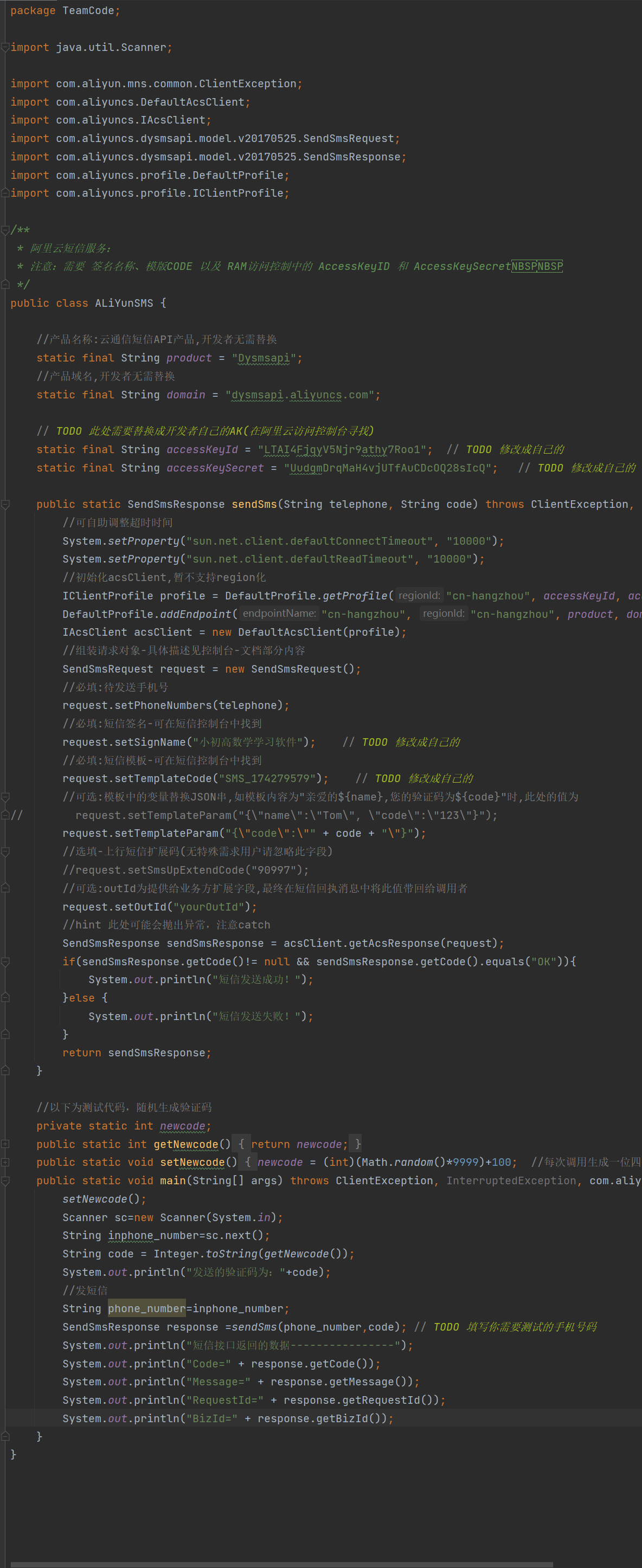 短信验证注册这个功能,在刚开始看到的时候真的是一头雾水,不知道从哪里下手。后面通过同学才知道榛子云和阿里云等等都可以实现这个功能,在csdn上找了教程,跟着教程走申请功能,结果没给我过!没办法,最后找的学姐拿了短信验证包。(这个应该不算抄袭8)