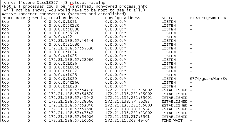 - -a :all,表示列出所有的连接,服务监听,Socket资料