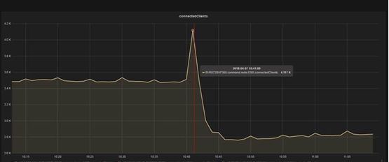 从服务端部署的监控来看,出问题的点上,连接数有一个突然飙升,从3500个链接突然飙升至4100个链接。如下图显示。