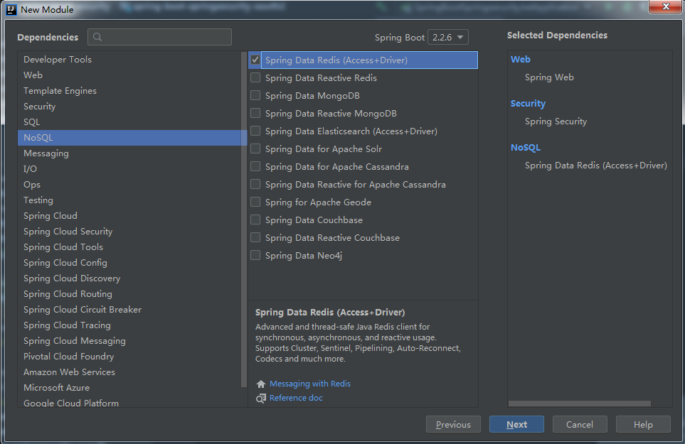 创建 Spring Boot 项目 spring-boot-springsecurity-oauth2 ,添加 Web/Spring Security/Redis 依赖,如下: