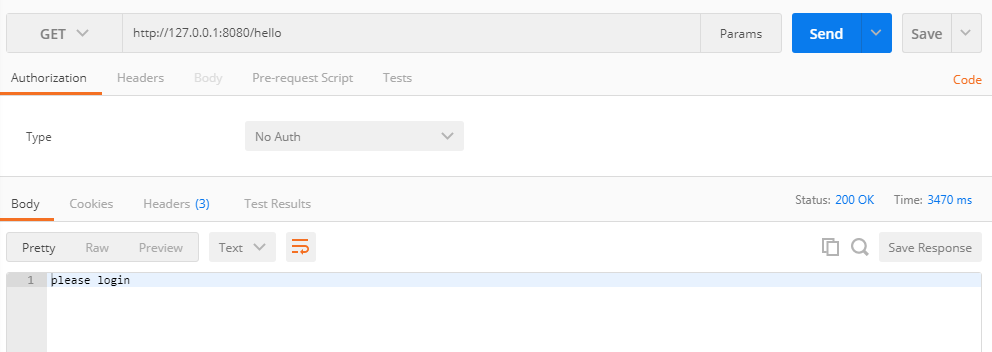首先访问 http://127.0.0.1:8080/hello ,因为未登录过,所以会跳到 http://127.0.0.1:8080/login 接口要求登录,如下: