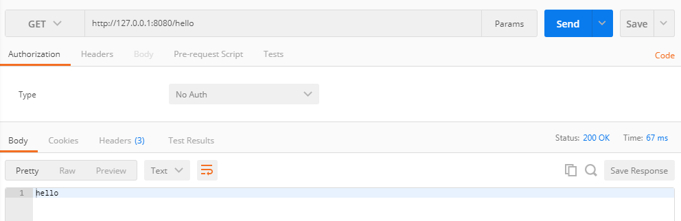 最后再次访问 http://127.0.0.1:8080/hello 就可以正常访问了,如下: