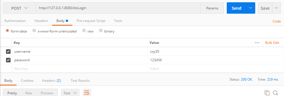 接着调用 http://127.0.0.1:8080/doLogin 接口完成登录,如下: