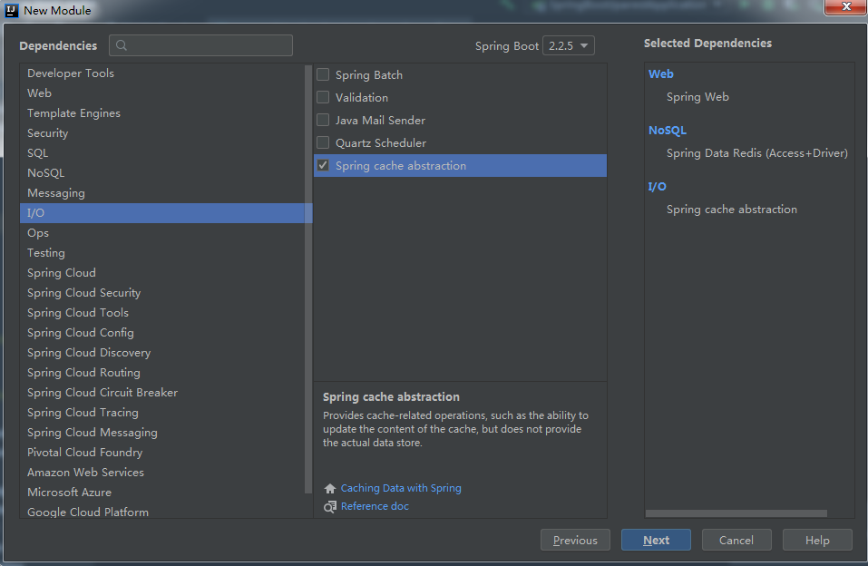 创建 Spring Boot 项目 spring-boot-springcache-redis ,添加 Web/Spring Cache/Redis 依赖,如下: