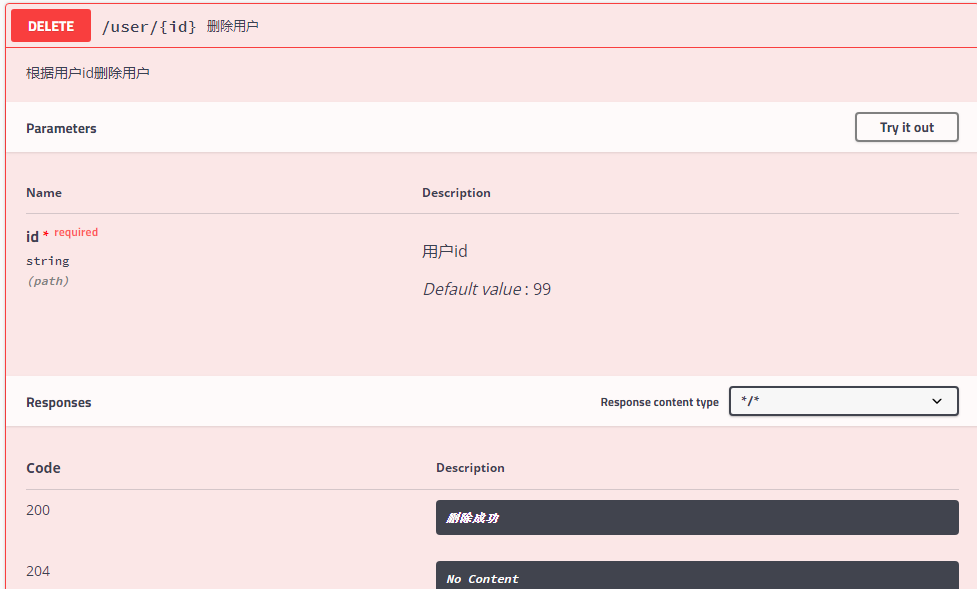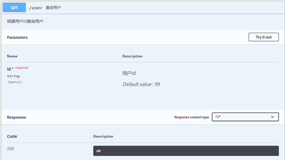 @ApiImplicitParam(name = "id", value = "用户id", required = true, defaultValue = "99")