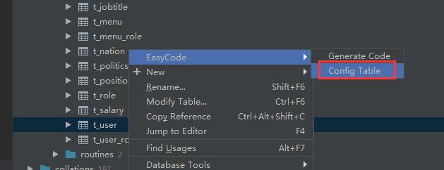 支持单张表单独配置,右键单击,选择 EasyCode -> Config Table 。