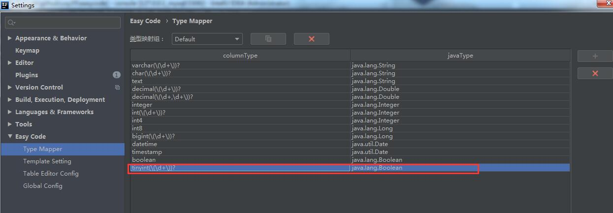 可能需要添加部分数据库类型与 Java 类型的映射关系。