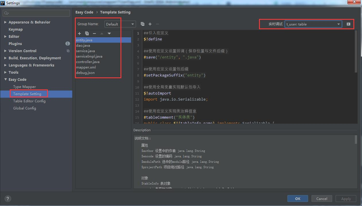 建议自己新建一套模板(包括 Type Mapper/Template Setting/Global Config 等),默认的 Default 模板供参考。