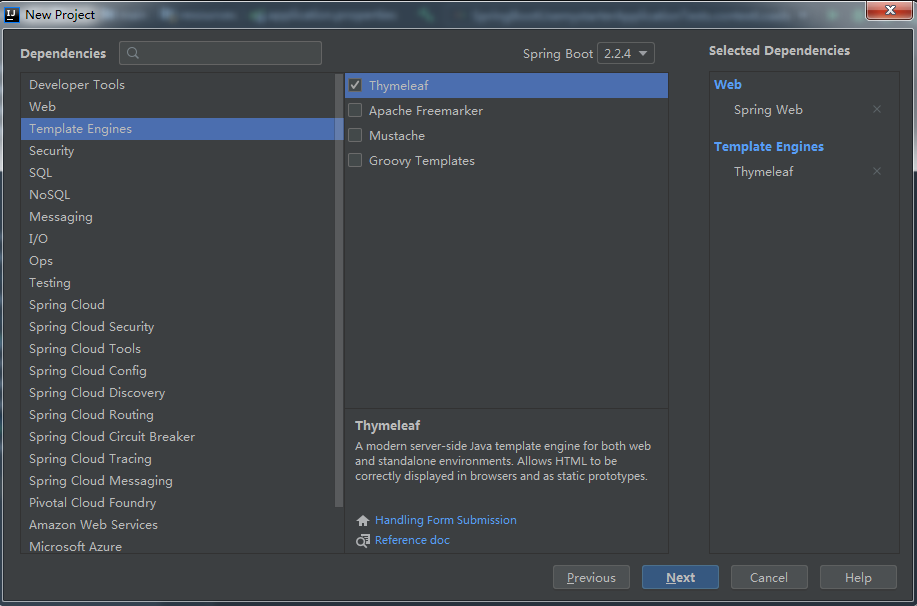 创建 Spring Boot 项目 spring-boot-thymeleaf ,增加 Web 和 Thymeleaf 依赖。