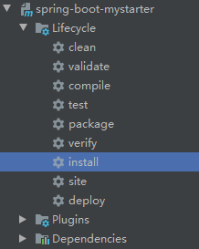 最后需要将这个自动化配置类安装到本地仓库,然后在其他项目中使用即可。安装方式很简单,在 IntelliJ IDEA 中,点击右边的 Maven ,然后选择 Lifecycle 中的 install ,双击即可,如下: