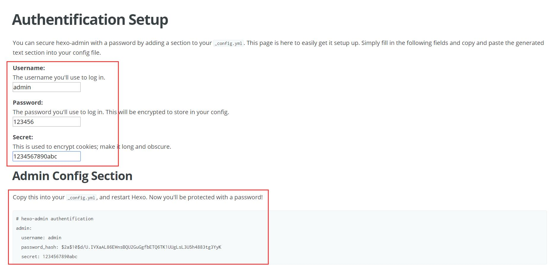 启动服务 hexo server -d 之后,访问 http://127.0.0.1:4000/admin ,按下列步骤完成配置: