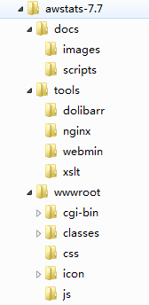 在 $TOMCAT_HOME$/webapps 下创建 awstats 文件夹,将 AWStats 解压后目录中的文件拷贝过来,目录如下: