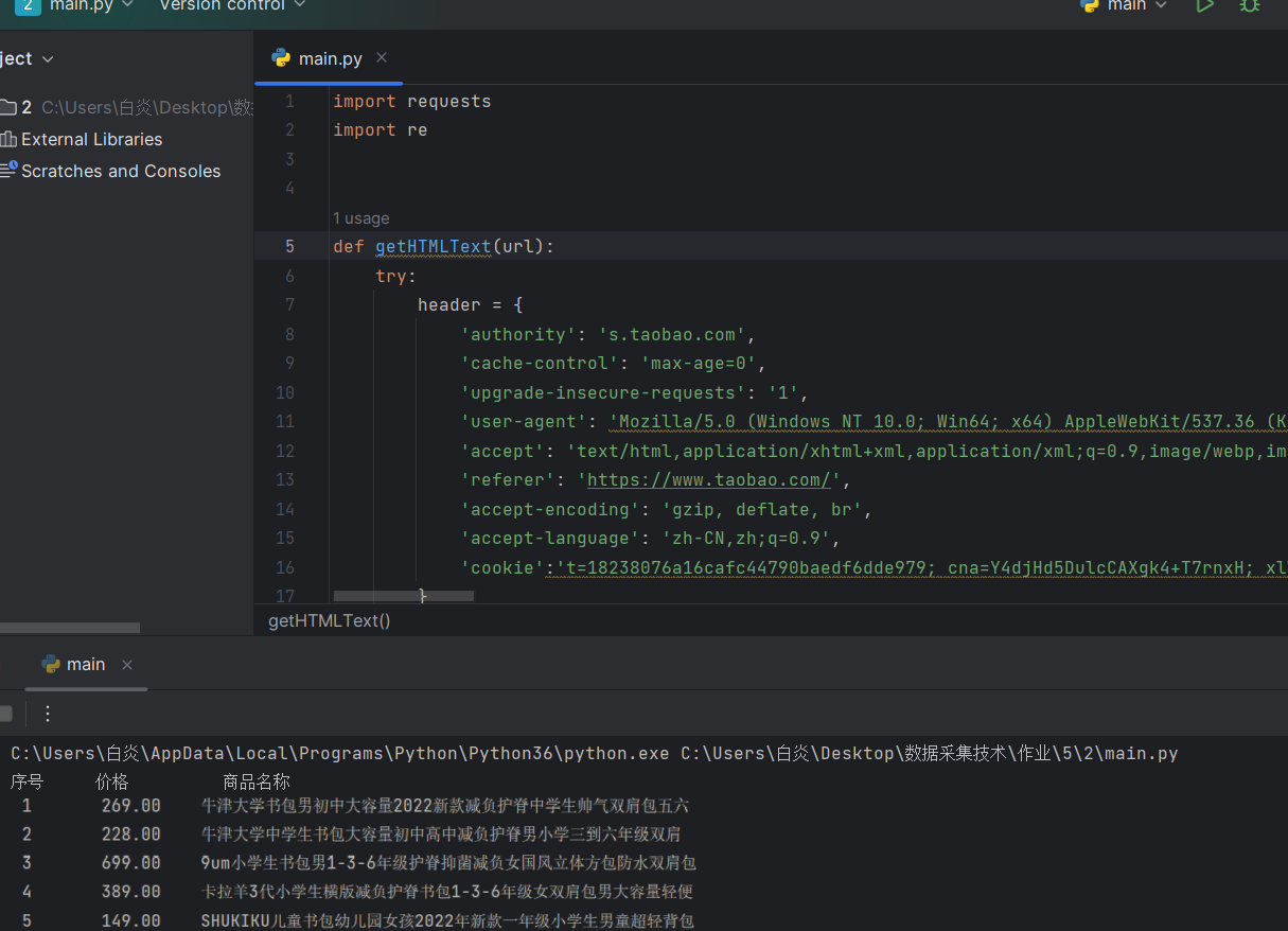 o 要求:用requests和re库方法设计某个商城(自已选择)商品比价定向爬虫,爬取该商城,以关键词“书包”搜索页面的数据,爬取商品名称和价格。