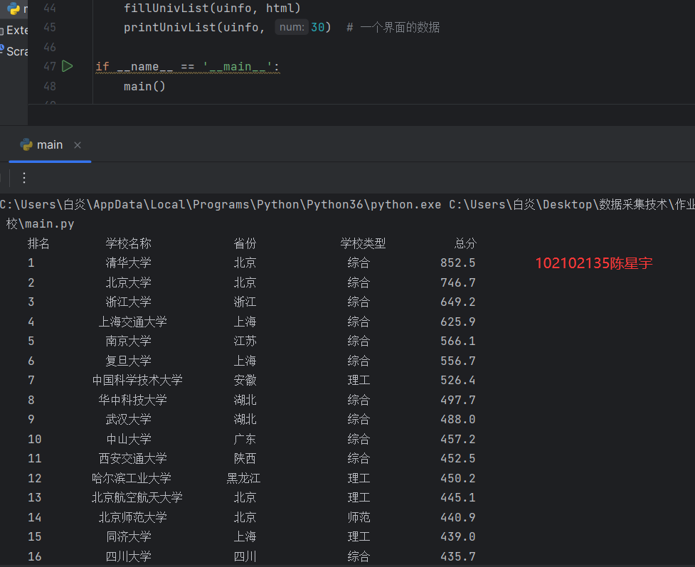 o 要求:用requests和BeautifulSoup库方法定向爬取给定网址(http://www.shanghairanking.cn/rankings/bcur/2020 )的数据,屏幕打印爬取的大学排名信息。