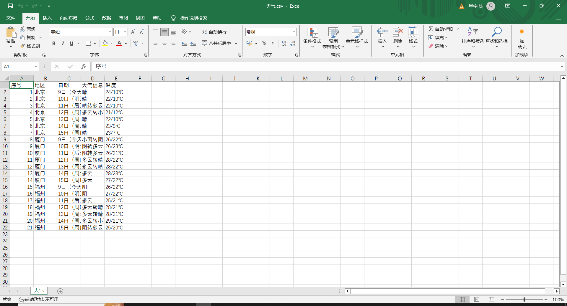 columns = {0: "序号", 1: "地区", 2: "日期", 3: "天气信息", 4:"温度"}