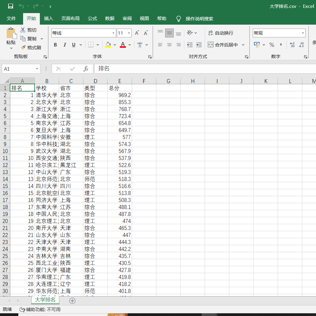 df.to_csv('大学排名.csv', encoding='utf-8-sig',index=False) # 保存为csv格式的文件