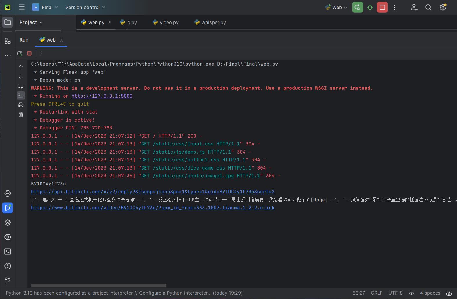 2.由于openai-whisper使用深度学习方法,如电脑不使用GPU运行则运行速度较慢。