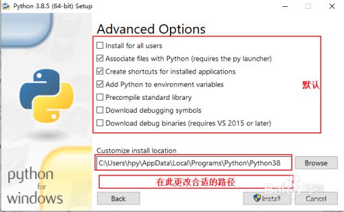 - 更改路径,推荐不要把解释器和系统放在同一个盘,以免系统卡顿,点击install进行安装