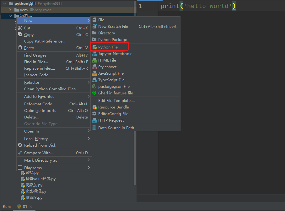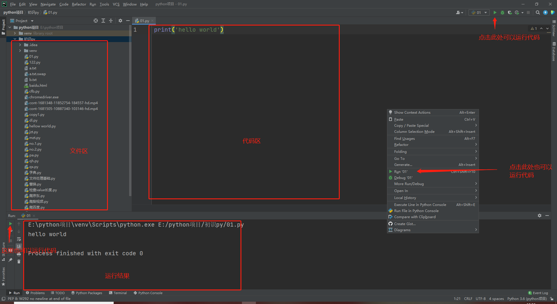 - 选择之前安装好的python解释器,点击create完成创建进入主界面