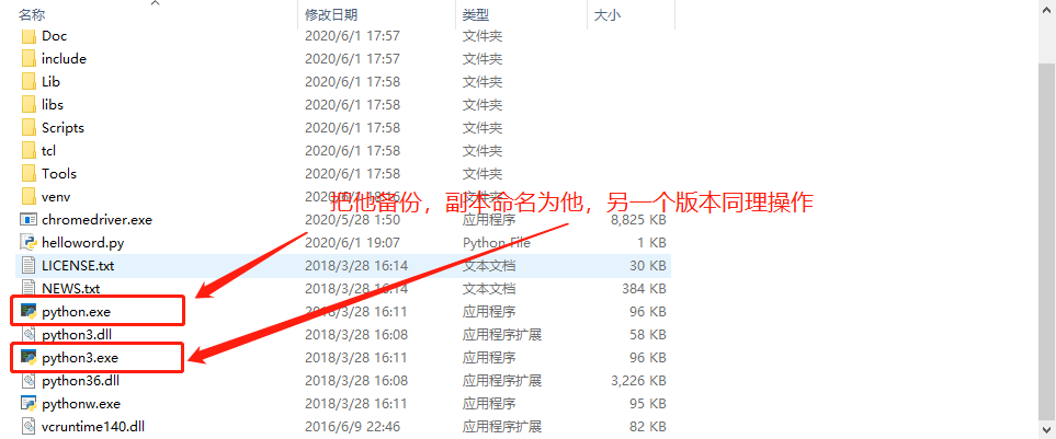 其实实现多版本共存的原理很简单,就是给不同版本的python解释器分别重命名。这里主要是为了配置path环境。因为path相当于一个仓库,当我们要调用python解释器时,cpu首先会在当前文件目录里找,没有找到的话会去环境变量里找,我们要实现多版本共存,就必须要把两个版本的python全部配置到环境变量当中去,这时我们只需要复制python.exe文件,分别命名为python2.exe,python.exe即可,然后将两个python解释器的路径分别配置到path中即可。