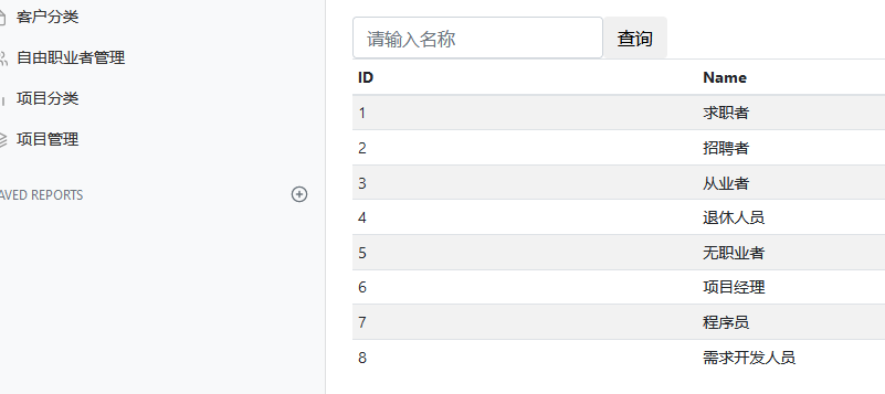 - 自由职业者类别的查询和搜索