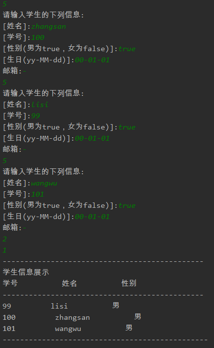 运行程序后先加入三个学生的信息