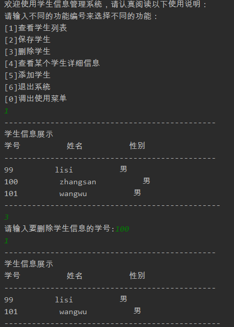 删除学生时,需要让用户继续输入删除的学生编号,根据编号删除学生。