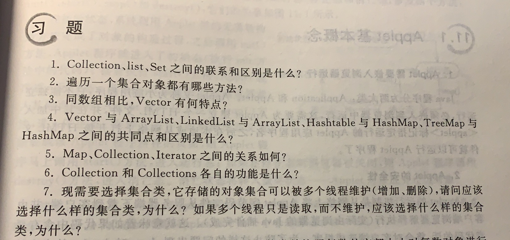 Collection是集合类的基本接口,用来说明作为一个集合类应该有的结构特征属性和共性操作方法。