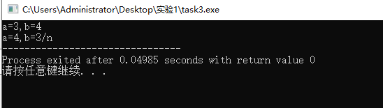#include <stdio.h> int main() { int a,b,t; a=3; b=4; printf("a=%d,b=%d\n",a,b); t=a; a=b; b=t; printf("a=%d,b=%d/n",a,b); return 0; }