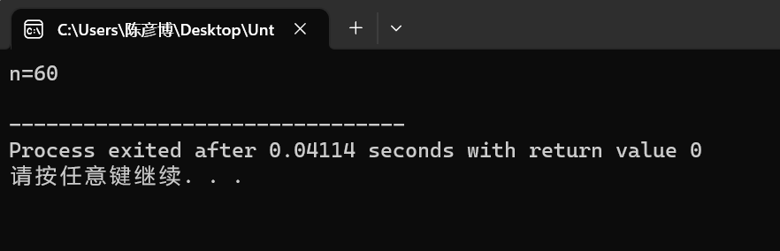// 生成一个【60,100】区间之间的随机整数,并打印输出 #include<stdio.h> #include<stdlib.H> int main() { int n; //补足代码 // n=rand()%41+60; printf("n=%d\n",n); return 0; }