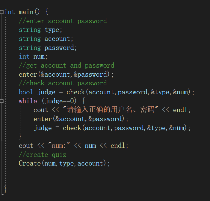 用check函数加上while判断输入账号密码是否正确,然后调用Create函数生成试卷。
