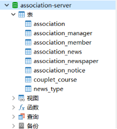 对于我们此次团队项目的对联云web端的数据库设计,我们增添了association-server数据库,其中有