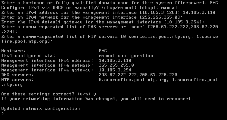 >configure network ipv4 manual 10.185.3.10 255.255.255.0 10.185.3.254