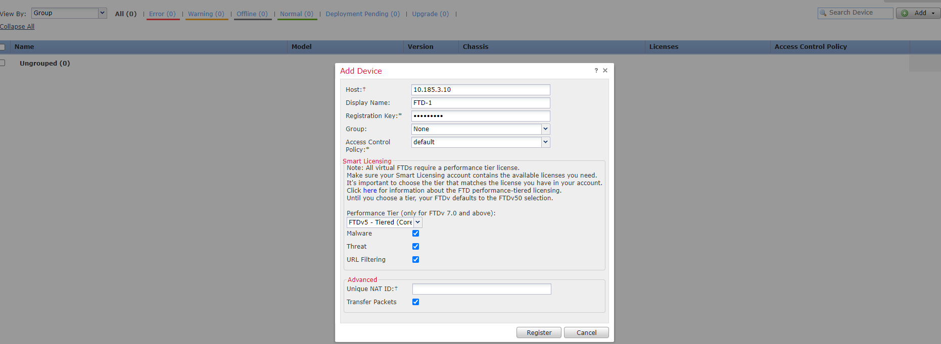 在FMC上添加FTD,完成设备FMC注册